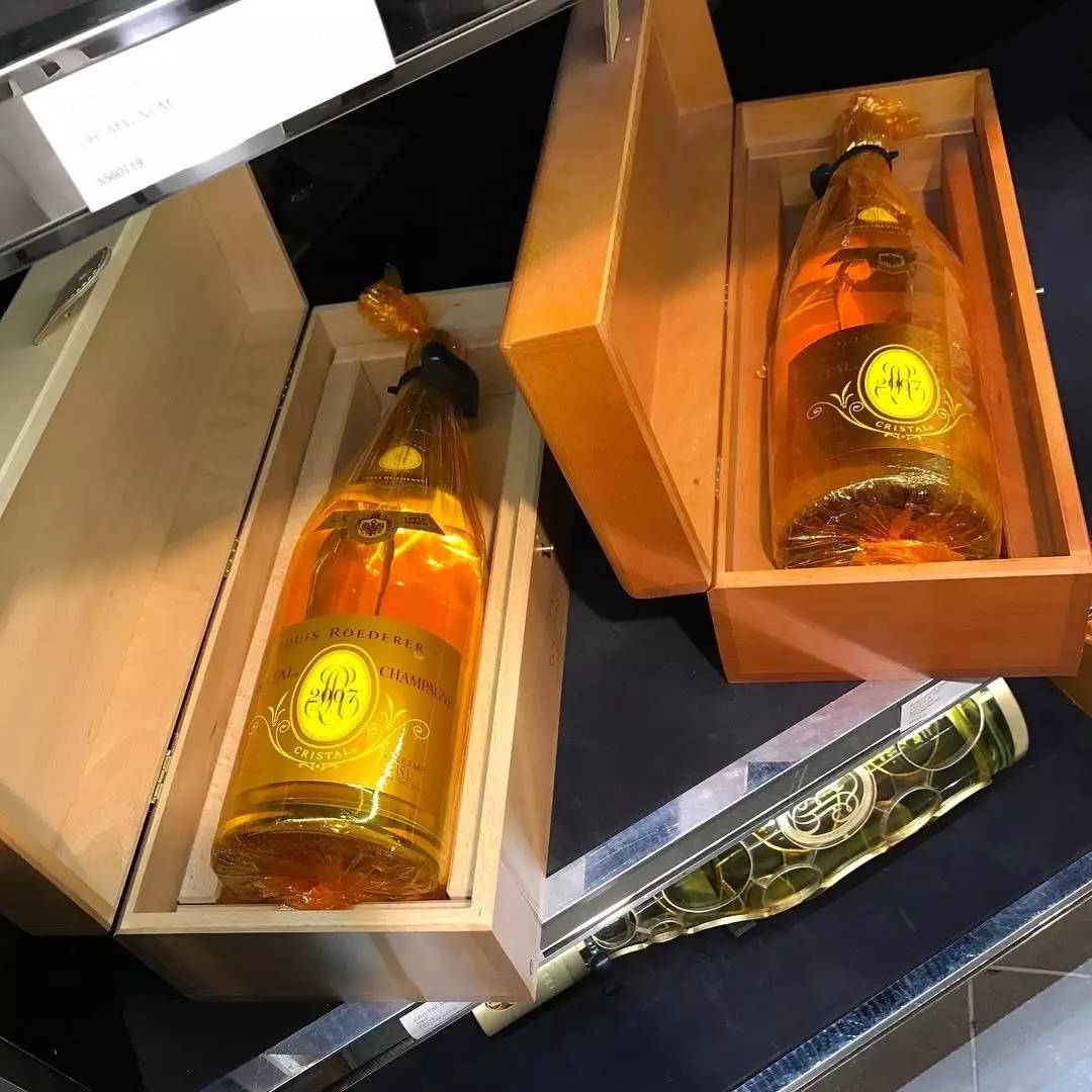 差点忘了路易王妃水晶香槟(Champagne Louis Roederer Cristal)。路易王妃是世界上最大的家族所有制香槟品牌,水晶香槟是其中风头最盛的一款。