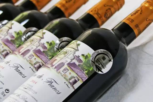 2014 年弗朗克酒庄干红获得了 2016 年阿基坦波尔多葡萄酒竞赛银奖(Concours de Bordeaux Medaille