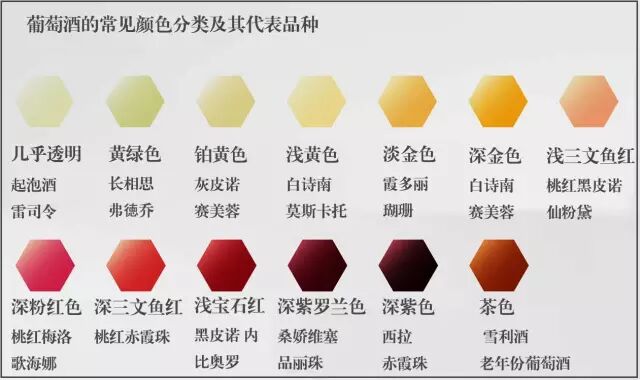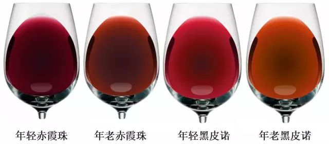不同的葡萄品种,酿出的葡萄酒颜色也千差万别。像赤霞珠(Cabernet