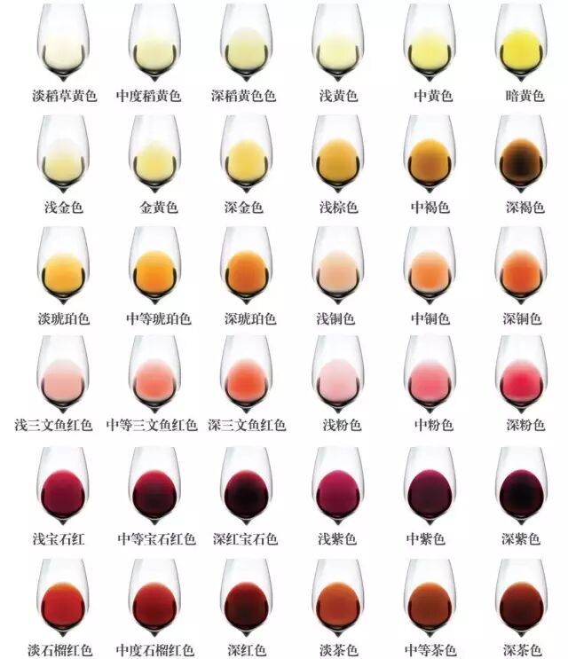 虽然我们不能仅仅凭借葡萄酒的颜色来确定这款酒的颜色、年份、品种,但是还是可以在宏观上对这款酒有一个大致的猜测,尤其是在盲品中,简单的一眼就可以排除许多的干扰信息。下面小编就给大家列举一下葡萄酒常出现的颜色,以及出现这些颜色的原因。