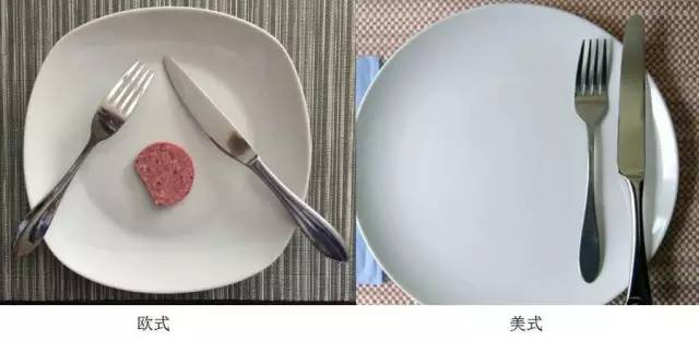 那为什么不在切好食物后换右手用叉子进食呢?这就不得不提到西餐用餐方式中的欧式和美式之分。大概到了 1850 年左右,西方的一些上层阶级不再将餐叉左右手换来换去,他们认为这样的做法不优雅。欧式的用餐方法随之运应而生,即在进餐过程中一直保持左叉右刀的姿势,切好食物之后也用左手持餐叉进食,进食的过程中右手的餐刀不会被放下。