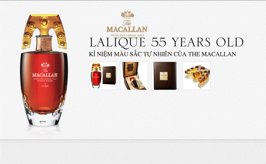 从 2005 年起,麦卡伦与法国知名水晶品牌莱俪(Lalique)合作,每 2 年推出一款莱俪系列限量版酒款。这些酒均选用至少 50 年的珍稀酒液,再加上极具艺术价值的水晶酒瓶,一直称霸全球最贵威士忌榜单。