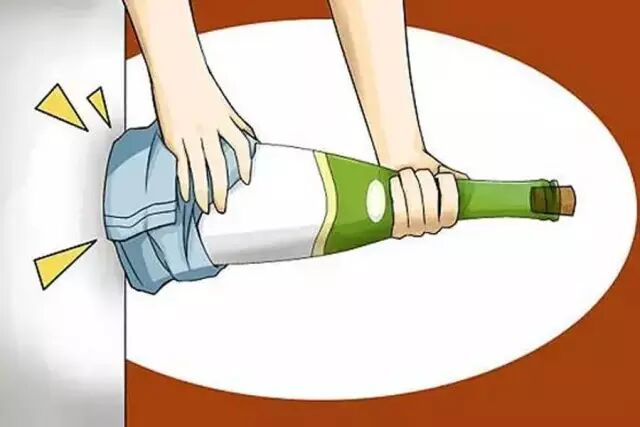 实在没有工具时,找条厚毛巾将瓶底保护好,然后将酒瓶垂直靠在墙上,一手扶住瓶底,一手握紧瓶颈,再均匀有力地用瓶底撞击墙壁,瓶塞受到力的作用会慢慢地顶出瓶口。