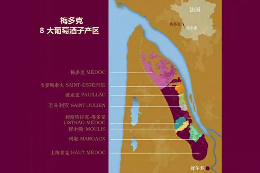 其实,梅多克总共有 8 大法定子产区。从北至南依次是: