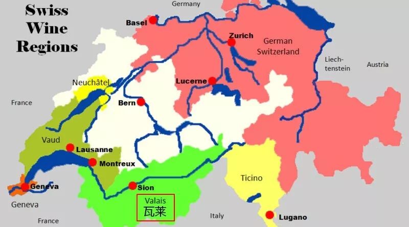 瑞士的每个州都产酒,但 80% 都来自于讲法语的西部各州。产量最大的是位于瑞士西南角的瓦莱州(Valais),我们盲品的这款酒正是来自这里。