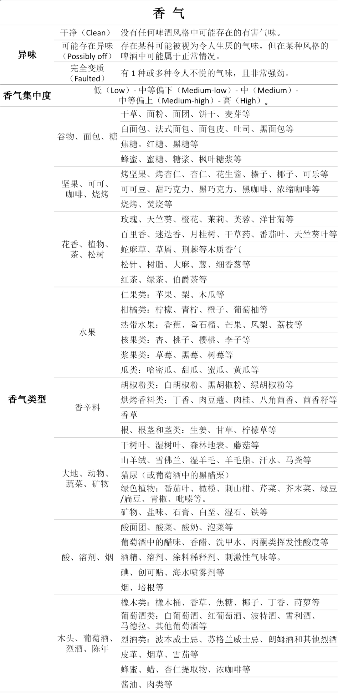 - 其中谷物、面包、糖类香气最常见,烘烤谷物的程度则会带来坚果、可可、咖啡、烧烤类香气。大部分啤酒风格都带有植物、花卉和茶等香气。这些香气通常来自酿造过程中投入的酒花,有时也会来源于其他额外添加的不同原料。