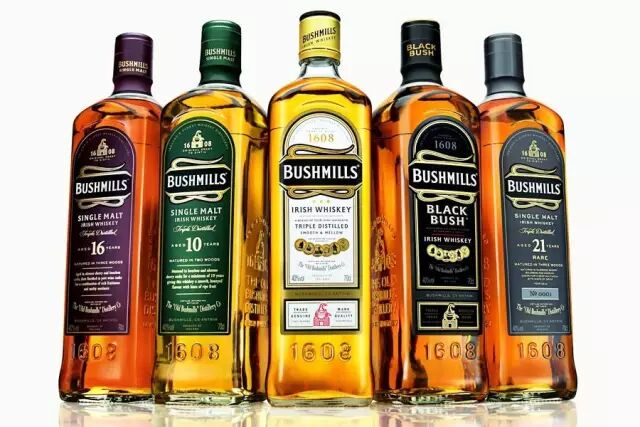 - Bushmills(布什米尔):起源于 1608 年的爱尔兰,极有可能是世界上最早获得生产许可的合法威士忌酒厂。如今,它是目前唯一一个依然运行完好的最古老的威士忌酒厂,已生存至第 5 个世纪,且风采不减。
