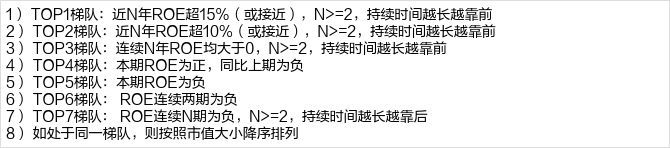 ]一般来说,一般来说,ROE持续超过15%,投资回报整体较好。如果ROE较高且整体变动不大,则业绩整体稳定性较好。ROE排序大致参照以下规则: