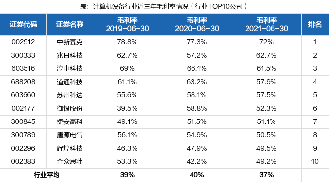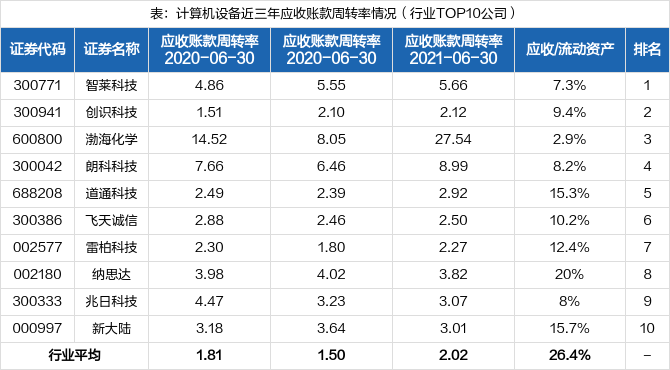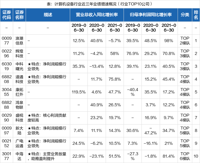 计算机设备行业公司比较分析:21年半年报计算机设备行业谁的报表最好看?