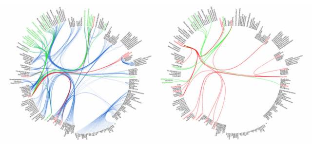 简介:最初主要用于基因组序列相关数据的可视化,目前已应用于多个领域,例如 影视作品中的人物关系分析,物流公司的订单来源和流向分析等,大多数关系型数据都可以尝试用 Circos 来可视化。
