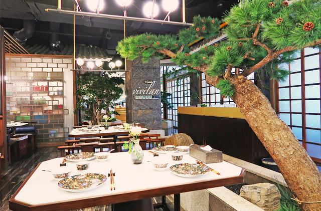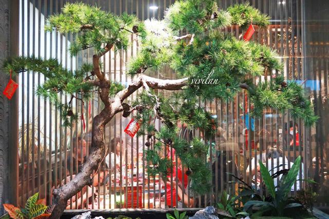 一进门,就可以看到很多细腻用心的场景布置,要说移步易景,一点都不为过。从花艺,到色彩恰到好处的衔接,再到餐具的选用,都体现出独到的用心。最吸引我的,还是院里院外的很多棵形态迥异的树木,每一棵都有种卓然的美,原来,这是老板最用心的地方之一,它们都是从深山老林里,被老板一眼看中,花重金运输抵京,可见,笃定的艺术审美,体现到了怎样的极致。