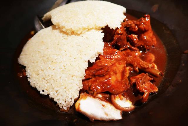土法红烧大公鸡,浓郁汤汁搭配脆脆的锅巴,一口下去,是小时候的家常味道没错的。