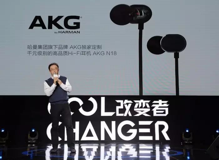 酷派改变者S1发布会上,哈曼科技副总裁刘苍松讲解双方合作