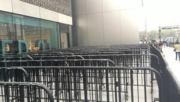 而在开业前,苹果门店外排队的人数并未超过30人,同样,安保人员也显得很无聊。这一点,与国内的零售店外的情景,一般无二。