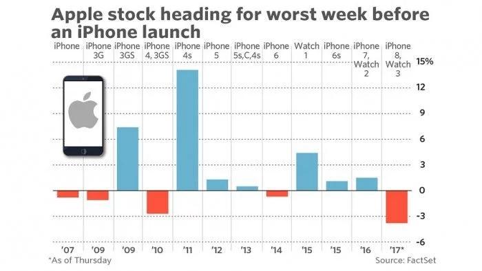 看上去,库克的“很开心”的底线和高昂的价格相比,显得更亲民一些,不过“底线”低并不见得是件好事。事实上,自上半月库克发布会“尴尬”后,苹果股价当天暴跌,此后并未扭转局面反弹走高。接着本周又遭遇连续暴跌,尽管有股票分析师形容未来是“先苦后甜”,但接二连三的下滑铸就的“十年来发布周最差表现”奖的滋味可真是不怎么讨喜。