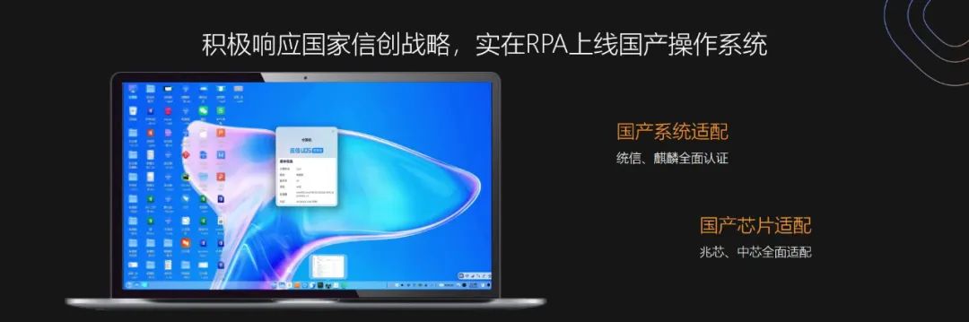 实在智能RPA新品几大特点中,重点提到了“支持信创,国产自强”,所发布的实在RPA信创版产品已完美支持基于国产芯片的服务器、数据库、适配麒麟、统信等国产操作系统,并已实现真正的商业化落地。