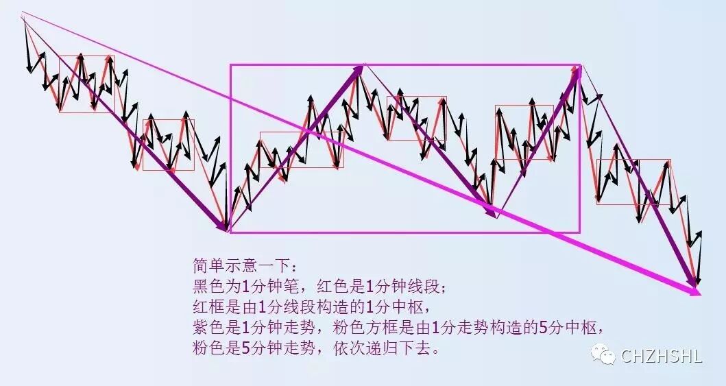 简单的讲,就是用中枢确立走势,再由走势构造大级别中枢,再构造大级别走势,这么一个递归的过程。