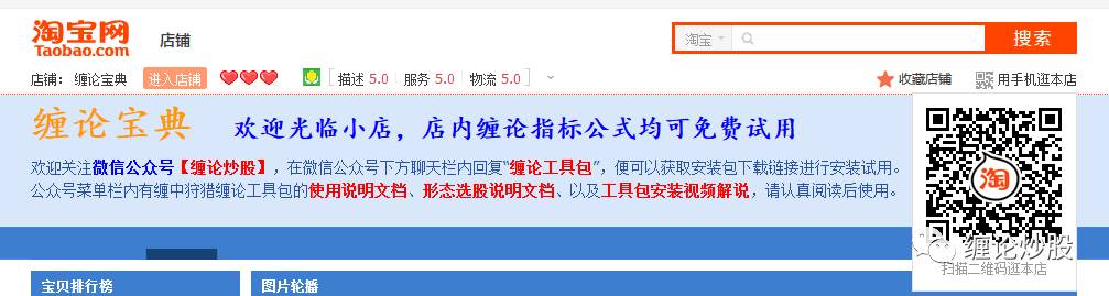 大家买不买无所谓啊,先帮忙关注一下新开的淘宝店铺,收藏一下店铺,顺便收藏小店的宝贝,捧个场。直接淘宝内搜索店铺:缠论宝典,或者浏览上面链接,或者扫描上面图片右侧的二维码,均可直达小店。