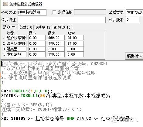 缠中狩猎缠论选股公式能够对形态作较为准确的识别,这个大大弥补了传统公式无法识别缠论形态的不足,又给出了多种参数,可自主选择,同时对状态识别做了很好的封装,用户可以像调系统函数一样,来调用中枢识别状态码,这样,大家可以很方便的打造出属于自己的专属选股公式来。