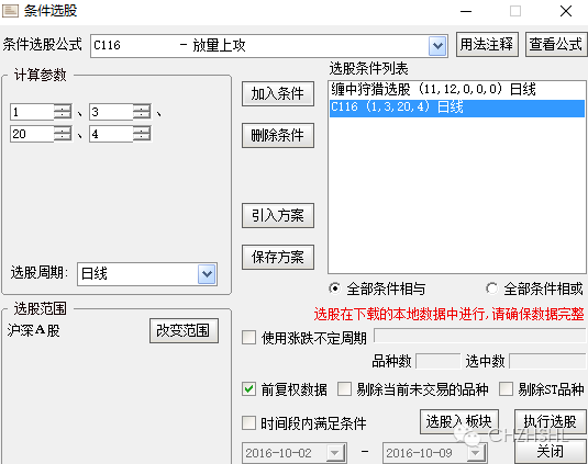 这个时候我们就使用了两个条件一起选股了,来看看结果怎么样吧!