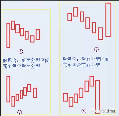 对于分型区间包含是否成笔,这一点一直存在争议,一般认为在大级别图上,即使有分型包含,也可以成笔。在最底层图上,分型包含说明该处力度不够,不予成笔;一种争议是前包含不成笔可以理解;后包含前面已经成笔了,再进行撤销,似乎有点不合理。所以有一些人支持前包含不成笔,但后包含成笔。当然按先后顺序也可以理解,但是前面笔成立并不是说不可以撤销推翻,分型完全包含就是说明一方力度不够,不予成笔也可以说得通。公式默认就是采用的这种标准。