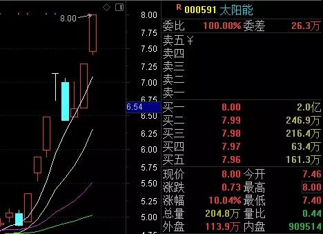太阳能,上周三点的,日内冲板回落,之后,连续干了两个板。