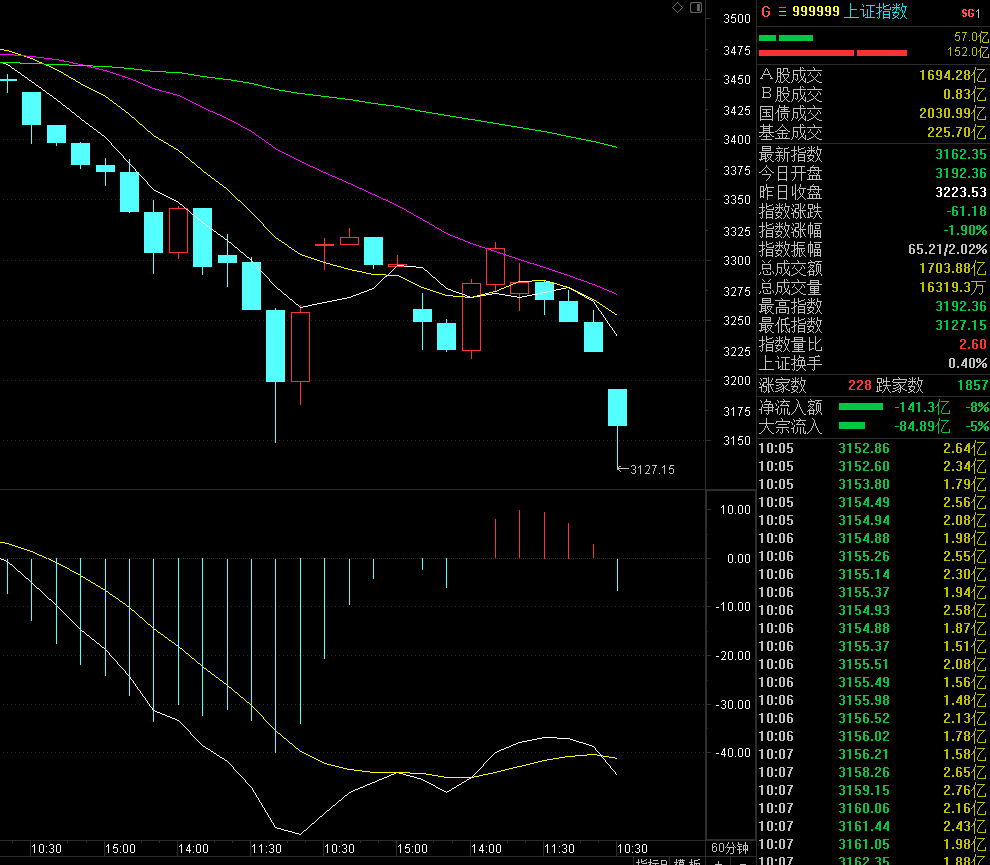 指数打破新低,60分钟连续底背离,机会大于风险,又是一次机会了