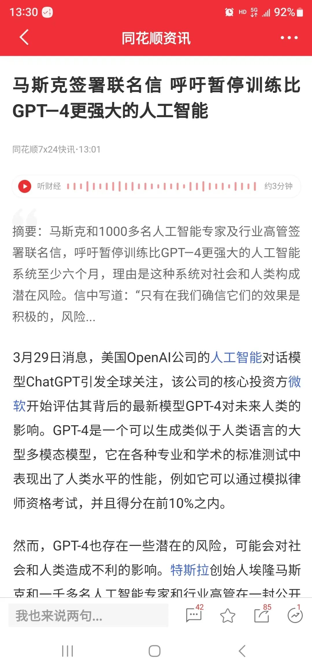我觉得,这个正是证明了AI的牛逼,应该继续上才对,当然也有些人解读为利空,我觉得可能只是马斯克踏空这个方向而已。