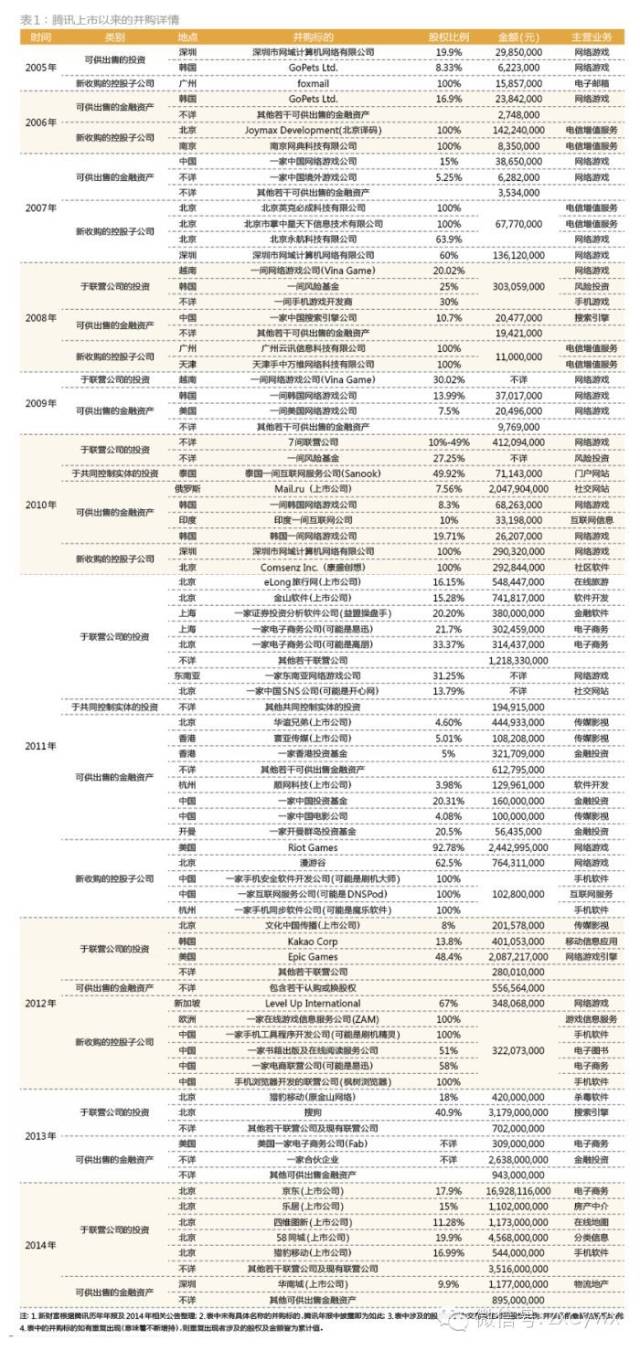 而即便是年报中,腾讯对于本年度的并购投资详情,也只是选择性地披露,并未做到逐一披露。正因如此,腾讯历年的投资并购详情,对外界来说一直是个谜。