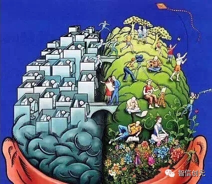 碰巧的是,你的大脑刚好可以说明我所谈及的变化。我们的大脑分为两个半球,左半球主要负责顺序组合、逻辑思考和分析判断;右半球主要负责非线性思维、直觉判断和综观全局。然而,它们之间的差别被过分夸大了。当然,即使是最简单的任务,也需要两个大脑半球同时运转。以大脑左右半球的差异作比喻,使我们能够解读现在,展望未来。上一个时代所标榜的技能,即驱动信息时代的“左脑” 能力,在今天依然是必要的,但已远远不能满足当前的需要。我们曾经蔑视或认为无足轻重的能力,即“右脑” 的创造力、共情力、娱乐感和意义感,将越来越能决定谁会蒸蒸日上,谁将举步维艰。对任何个人、家庭或机构而言,无论是要取得事业上的成功还是得到个人的满足,都需要具备全新思维。