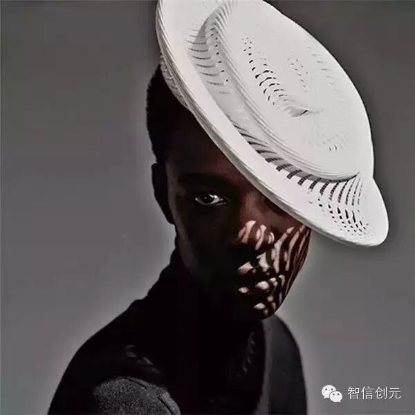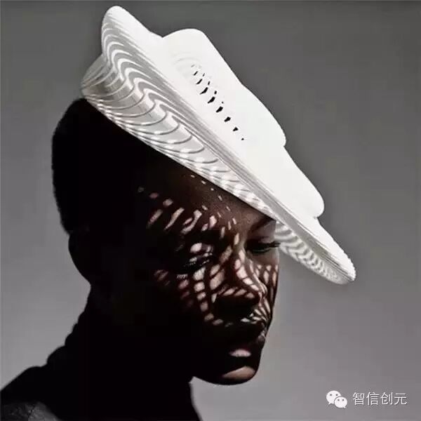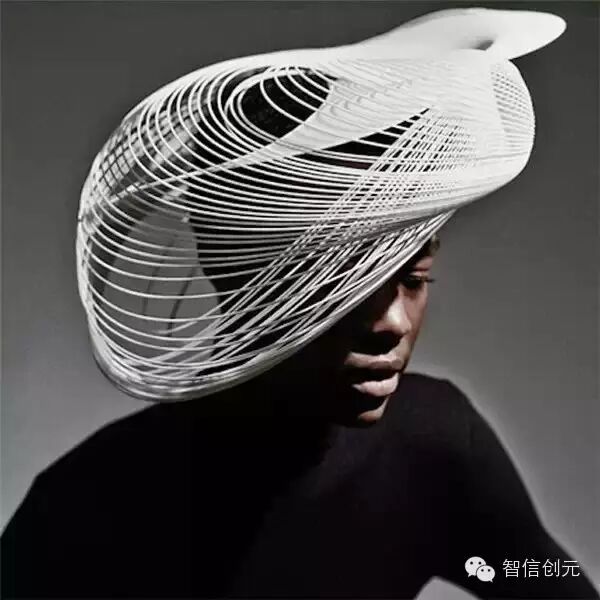 不仅是服装,配饰也可以用打印的,设计师Gabriela Ligenza的3D打印帽饰。