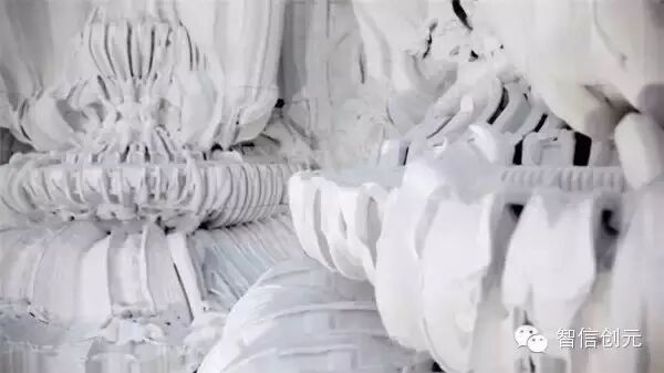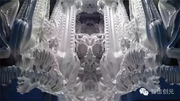 设计师没有用3D打印制作艺术品,他们打了一个高精度的宫殿,被称作Digital Grotesque,还可以先制作一个小型的看效果,再放大至原尺寸,精细得如同洛可可时代的繁复花纹,都只需要按下按钮,让机器百分百还原整个设计。