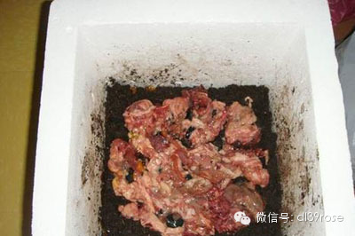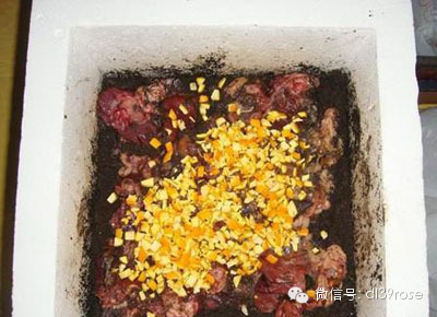 主要是用鱼肚肠,鱼刺,鱼骨头,虾壳,鸡蛋壳,趾甲,这些都是很好的磷肥,我把它们放在泡沫盒里单独做.