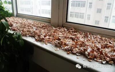 把蛋壳放在阳台里晒干、打粉放进厨余桶内跟厨余一起发酵做肥料