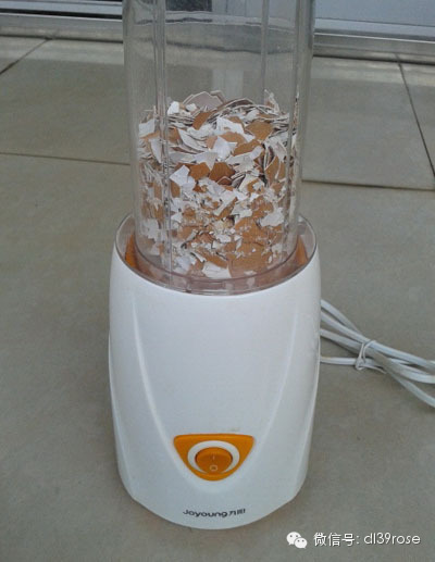 把蛋壳粉碎,必须晒干,因为还残留有蛋白清,比较湿,打不了粉