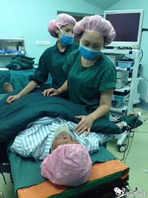 照片右边两个是麻醉医生,他们在准备,准备麻醉开始。