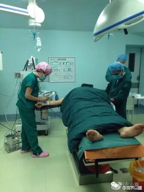 我喜欢坐在手术间的地上,背靠墙,脚伸直,舒展开,半躺着,充分让脚伸开休息。这是我最开心舒服的时候。一台高难度手术成功了,病人平安,外科医生心中会有满满的成就感,快乐无与伦比。腹腔镜的手术,往往要一只脚站立,一只脚要踩电刀,所以脚挺累。站久了的脚舒展开休息,爽死了。什么红包不红包的,见鬼去吧!