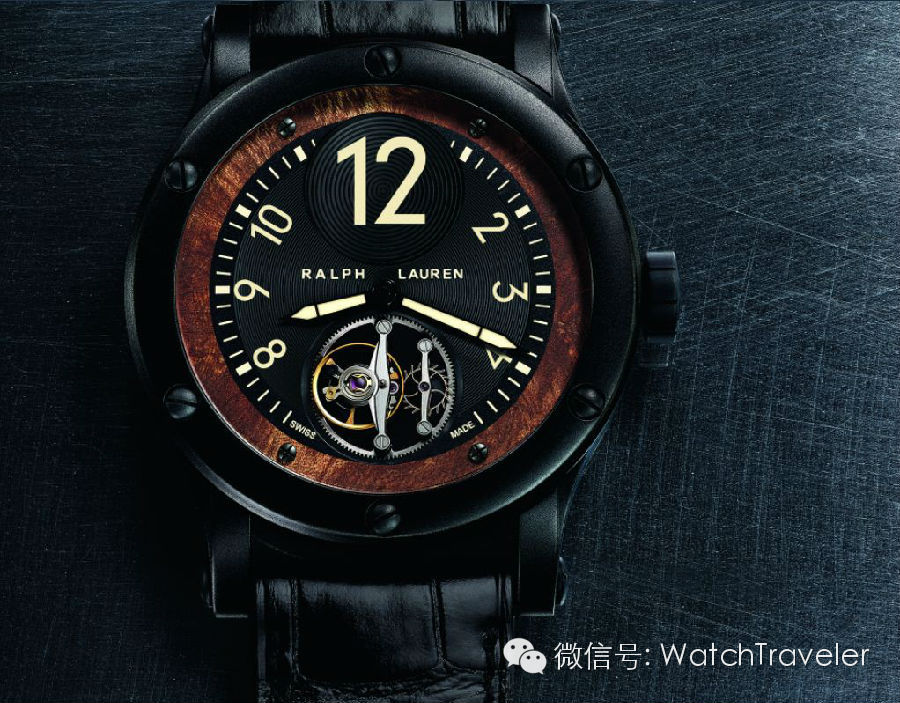 拉夫劳伦45毫米黑色精钢飞行陀飞轮运动腕表