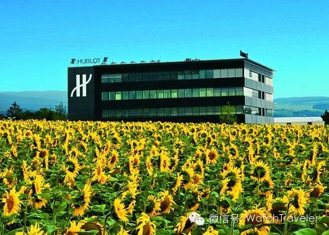 宇舶工厂。工厂前的向日葵地和油菜花。宇舶的表款色彩艳丽,表厂建筑主色却是灰色和黑色,而工厂四周金黄的向日葵和油菜花让工厂生机勃勃。