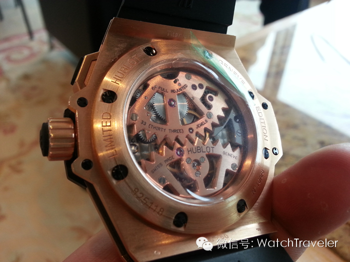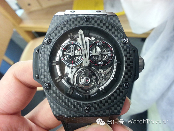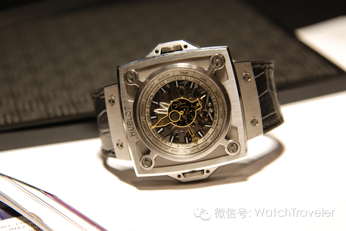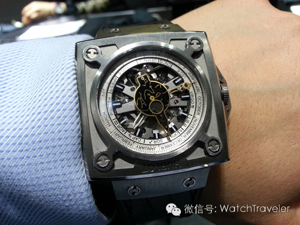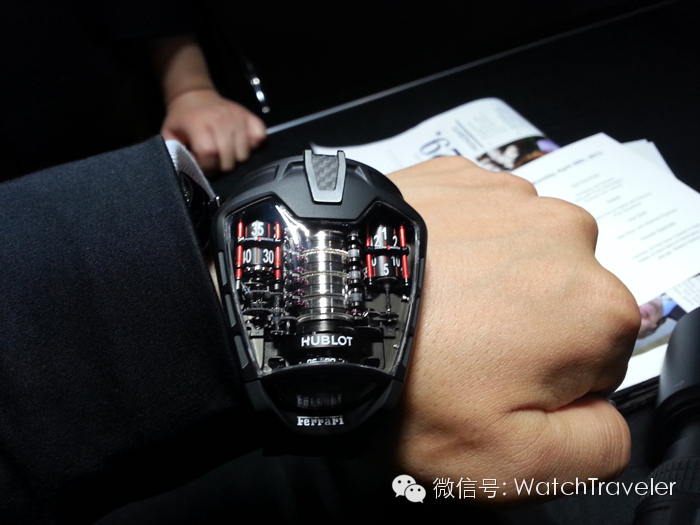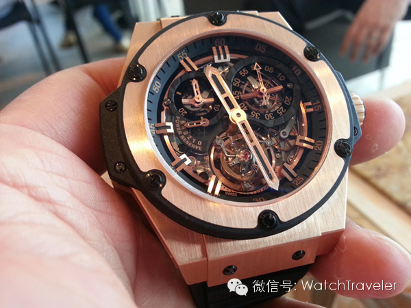 2013年巴塞尔展推出并红极一时的宇舶时间机器“拉法拉”。我的腕和手也显小了。