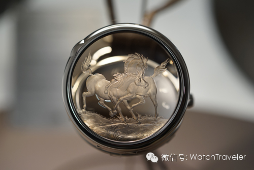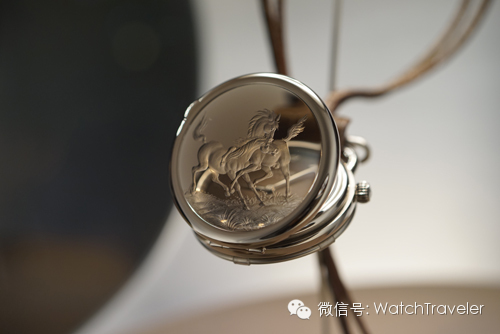 第一天很重要,我第一个选择看的品牌常常也是自己挚爱的牌子。第一天,先去看绝美的东西。爱马仕每年在展厅只能看的UniquePiece怀表或腕表就是这个调调儿。今年的骏马怀表美翻人了。所以我拿来做第一天封面。最重要新品“时间隐藏”的GMT两地时很值得玩味。