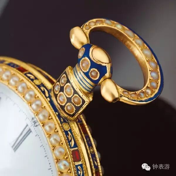 最为高级和精致的“中国表”,包括怀表的把头(表冠)这些细小的部分,都已精细的珐琅工艺和金、珍珠、宝石镶嵌技艺来制作