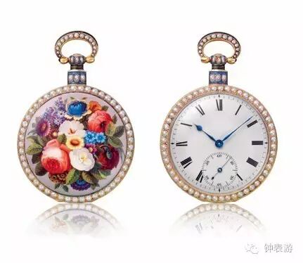 百花造型微绘珐琅壳面的怀表
