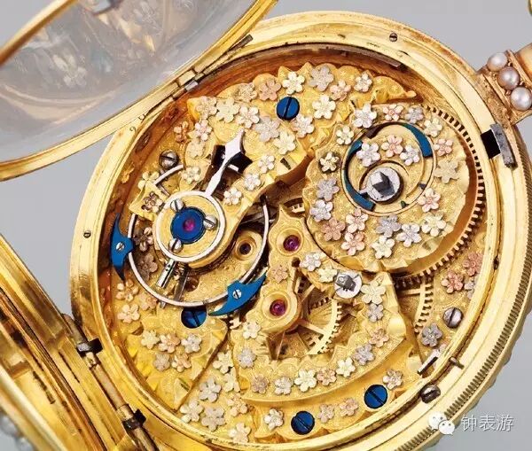在机芯上雕刻和镶嵌百花的做法,如今再也看不到。也没有如此奢华的机芯了