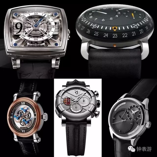还不熟悉这5个独立制表品牌的,可以从图了解它们。从左到右、从上到下分别为MCT、Ressence、Speake-Marin、Romain