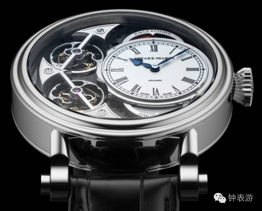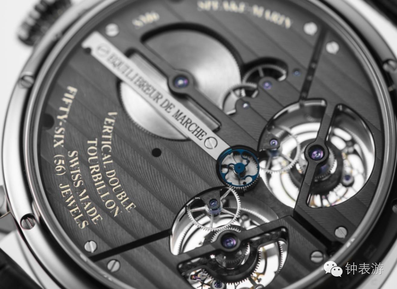 独立制表品牌Speake-Marin的Black Magister Vertical Double Tourbillon腕表,采用SM6手动上链机芯