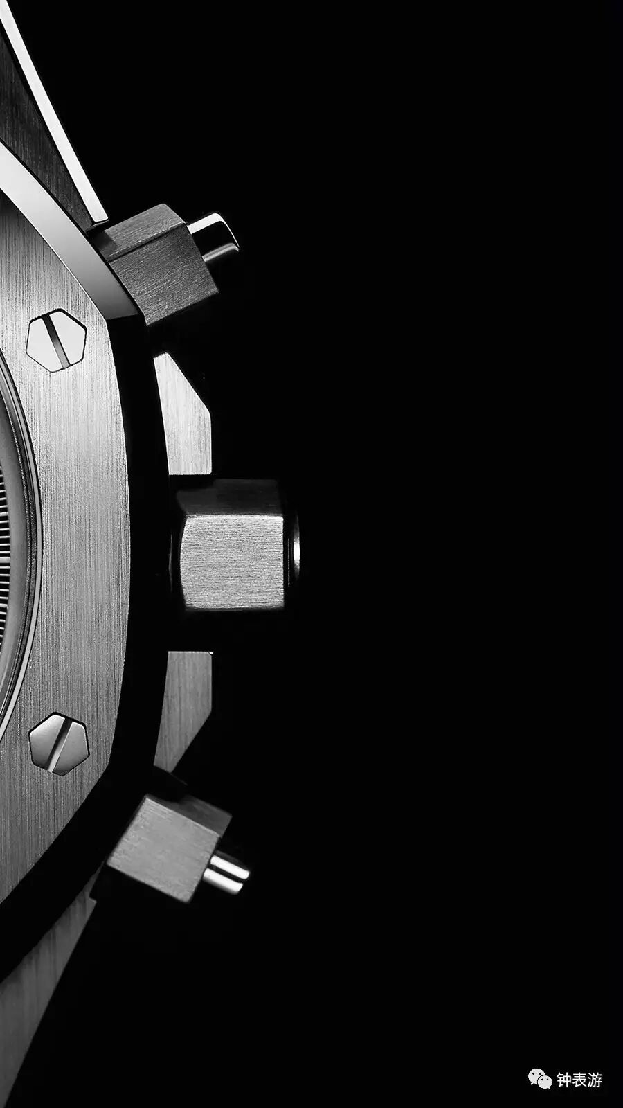 全新的皇家橡树计时码表,虽然看起来会和皇家橡树离岸型系列某些计时码表有点相似,比如表冠两边都有护肩。但看细节就会发现:表冠护肩因为是离岸系列的典型特色,所以离岸型系列的表冠护肩更大更明显,而皇家橡树系列计时码表的表冠护肩则只是保护和装饰作用,视觉上要小和柔和许多。