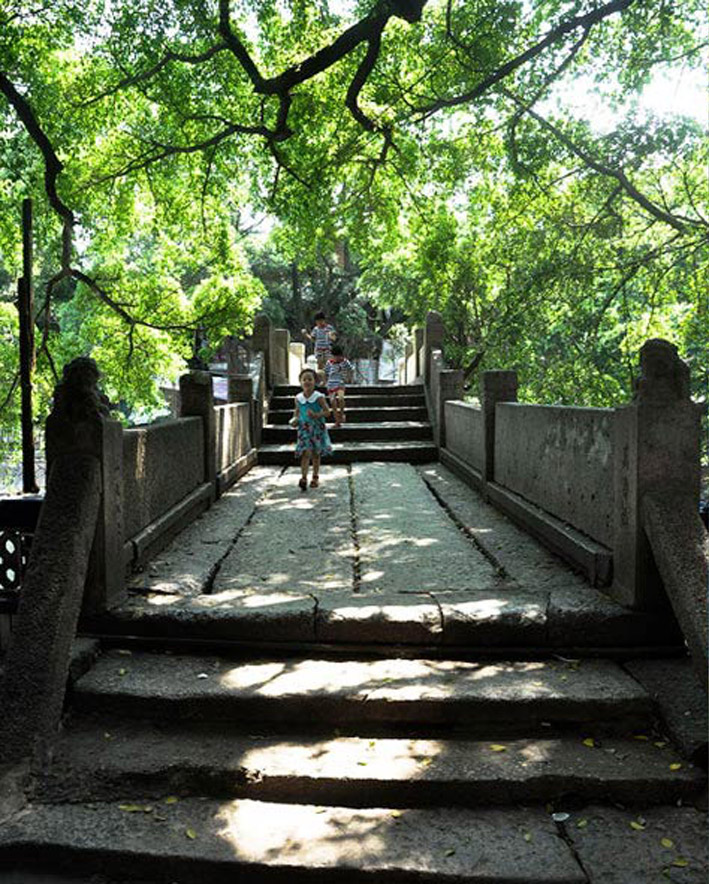 二桥亭桥离光禄坊公园不远,南北向横跨在通湖路与仓前街上,站在桥头面对的便是文儒坊大光里路口,大光里巷子不深,清末大儒陈衍(《福建通志》主编)、何振岱(《西湖志》总纂)、陈元凯(林觉民岳父)等皆居于此,不妨想想,茶余饭后倚靠桥亭的他们,目送着桥下流水东逝,又各有着怎样的咨情感触。