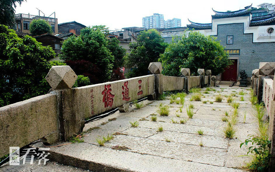 中亭街,承载了许多老福州人的快乐时光。如今,昔日的老房子,狭窄的街道已荡然无存,代之而起的是一条全新的、宽敞的商业街和住宅。而就在离繁华街区不到几十米的地方有一座古桥——三通桥静静地躺在那里,被磨光的石板桥面上杂草丛生,斑驳的桥栏似乎在诉说那久远的过去。