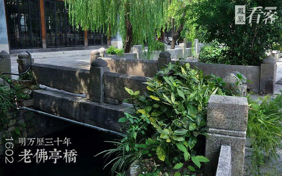石桥名曰“虹桥”,横卧光禄坊南至玉山涧段的古罗城大濠护城河上。据史料记载,是桥始建于五代,旧名板桥,木构,有亭,后圮,易以石,俗名老佛亭桥。现存为5.35米长、3米宽、南北走向的单跨平梁石桥。桥梁与望柱、栏板间的衔合皆为榫卯结构,形制朴拙,除望柱顶部的宝珠状柱纽外,再无别样雕饰了。东向桥梁之侧镌有一行铭文:“万历壬寅年仲春十方仝立”,字犹明晰可辨。“万历壬寅年”即万历三十年、公元1602年,仲春指阴历二月,“仝”通“同”。可见,当年重建虹桥非因某人或某几人之功,乃合十方乡邻之力而成。